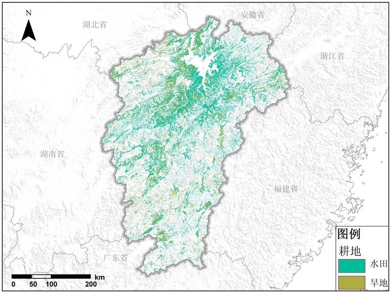 - 下記に示すサンプルは2010年の農地で、水田および畑地の分布を示しています。